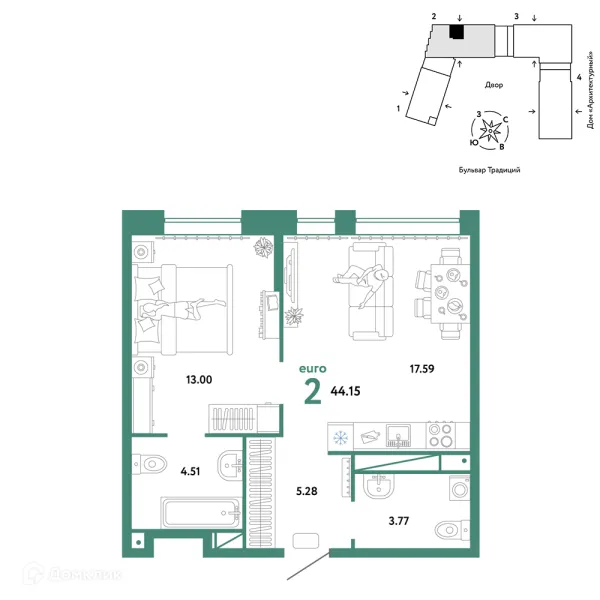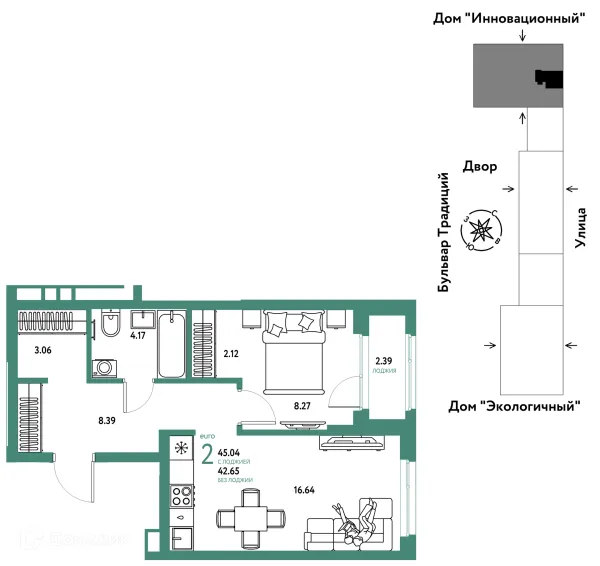 2 комн. квартира в Тюмени в ипотеку от 44 301 руб/месяц