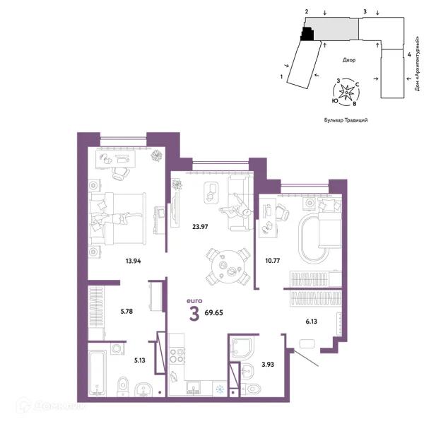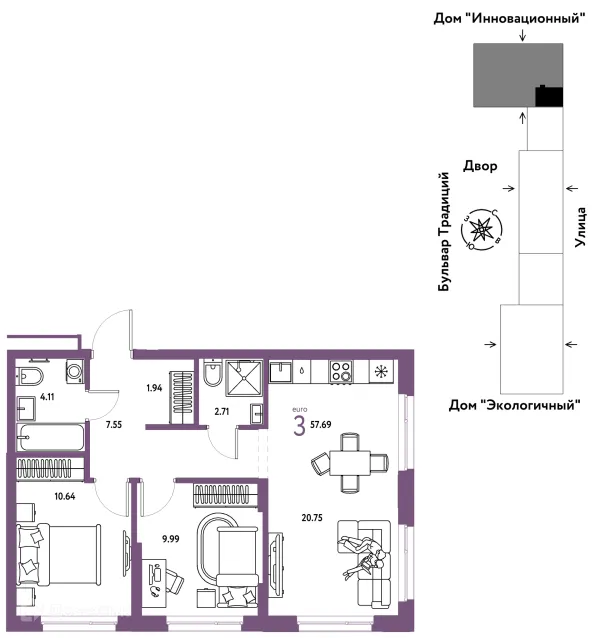 3 комн. квартира в Тюмени в ипотеку от 65 278 руб/месяц
