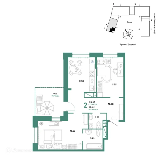 2 комн. квартира в Тюмени в ипотеку от 66 217 руб/месяц