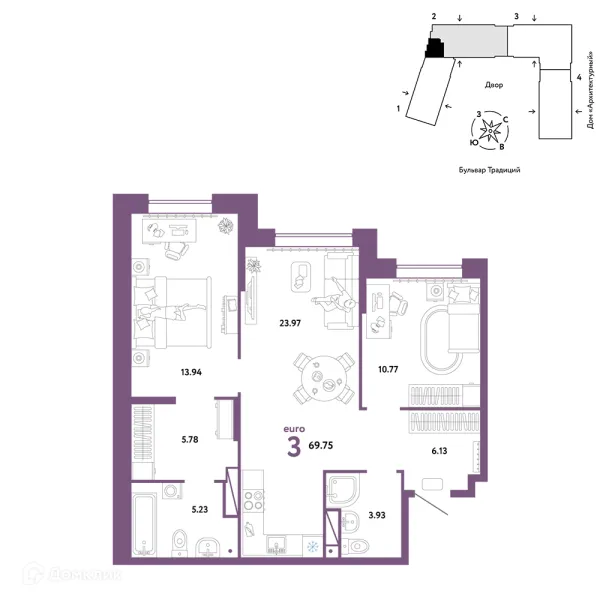 3 комн. квартира в Тюмени в ипотеку от 72 323 руб/месяц
