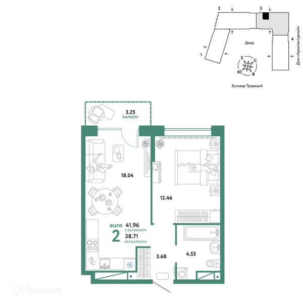 2 комн. квартира в Тюмени в ипотеку от 42 971 руб/месяц